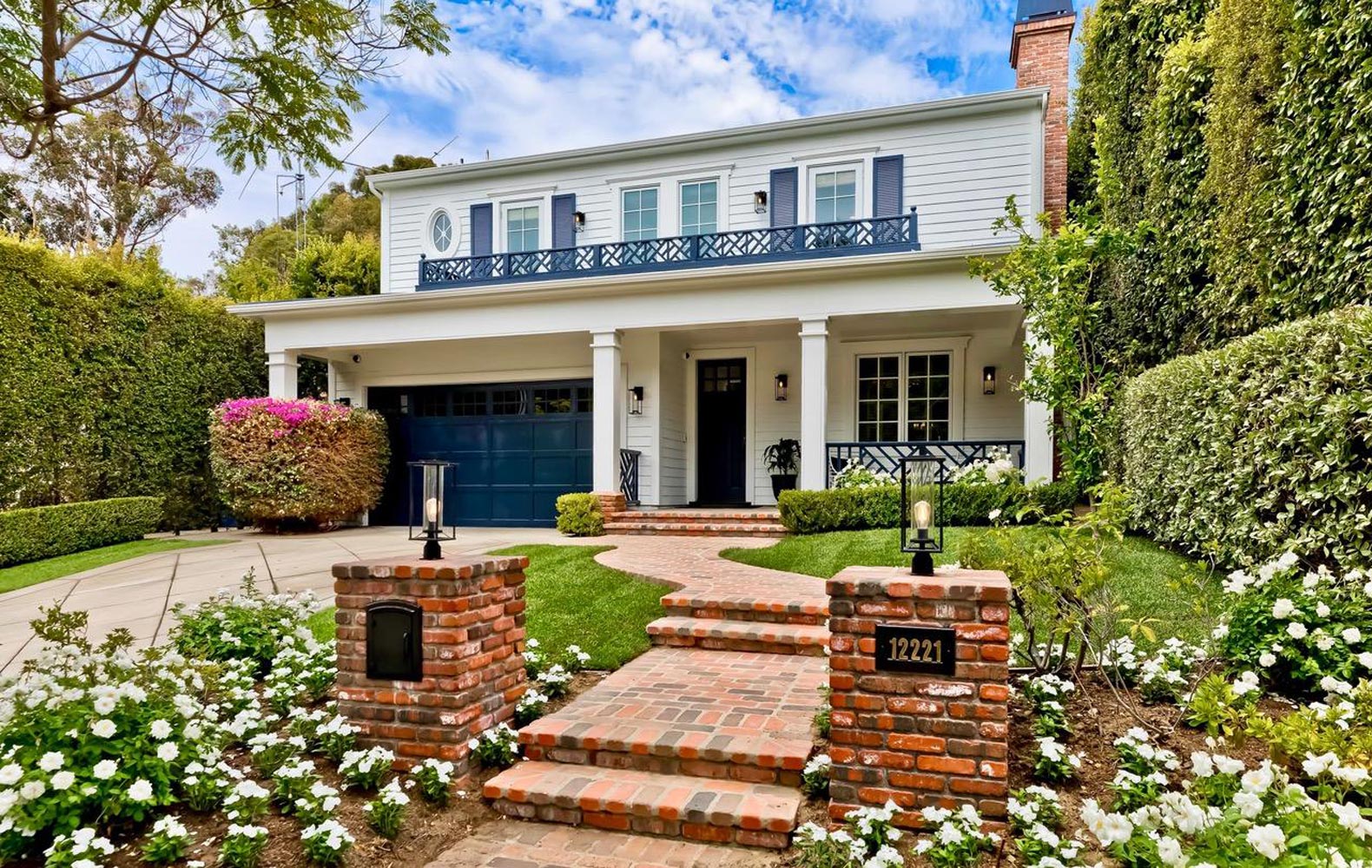 EXQUISITE CAPE COD TRADITIONAL IN PRIME BRENTWOOD! Character and warmth abound in this impeccable, elegant and timeless 5 Bedroom / 6 Bath gem located on a picturesque and quiet cul-de-sac in one of Brentwood's most desirable neighborhoods! This open floor plan home with stunning hardwood floors, crown moldings and high ceilings offers harmonious flow and custom design elements throughout. The enticing curb appeal with lush lawn and flowers introduces the entry porch with a majestic sitting area. Upon entry, the gracious living room with fireplace leads to an elegant, formal dining room which can accommodate dinner parties of all sizes. Continue into the heartbeat of the home: the open Chefs kitchen and family/TV room with oversized center island, stainless steel appliances, eat-in area, butlers pantry, walk-in food pantry, built-ins and wood burning second fireplace. Open the family room French doors to the dream backyard perfect for outdoor entertaining. Surrounded with lush greenery, the completely private yard offers a large covered outdoor dining/BBQ patio, sport court and grass play field. Ascend the sun-drenched staircase with giant skylight and retire to the grand primary suite reminiscent of a 5-star hotel with vaulted ceiling, oversized balcony and 2 huge walk-in closets. The exceptionally large and luxurious bathroom features dual sinks, spacious vanity, soaking tub and giant shower. Three additional generous-sized bedrooms and an all-purpose bonus game/TV room with balcony complete the second story. Other desirable features include: gorgeous custom woodwork, Ring security, Lutron lighting, dual central ac/heat, laundry room, spacious direct entry 2-car garage and bonus 2-car driveway. Conveniently located near Brentwood's Farmers Market, shops and restaurants! A must-see classic for the most appreciative buyer.